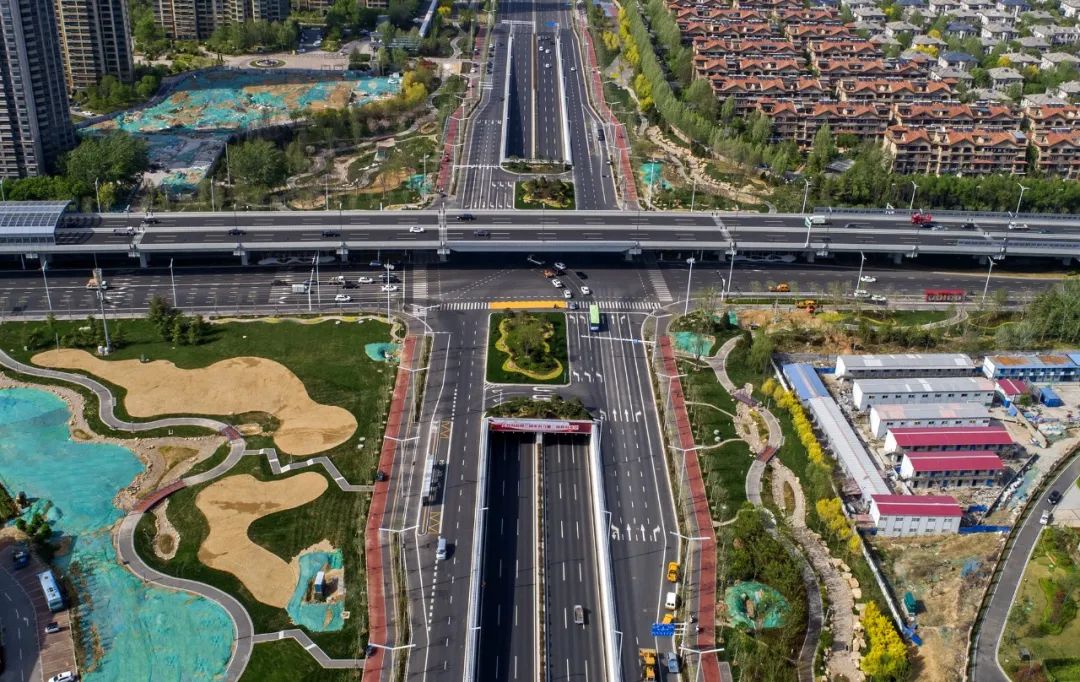 寶通街快速路一標段園林景觀綠化工程,分為景觀和綠化兩個部分,其中景觀部分包括園路4070㎡、景觀橋6座、耐候鋼擋水堰1000m、澆灌管道10725m、景觀雕塑小品、景石等,綠化部分面積為97000㎡,包括喬灌木2917株、地被模紋470萬株、草坪30265㎡。