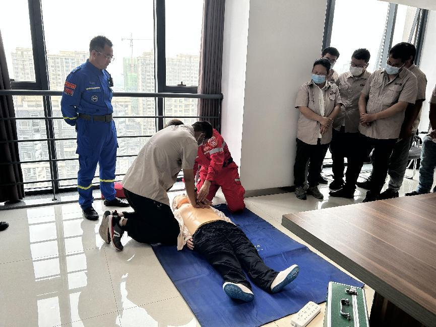 活動(dòng)最后,由專業(yè)救援隊(duì)對公司員工進(jìn)行了心肺復(fù)蘇的技能培訓(xùn)。