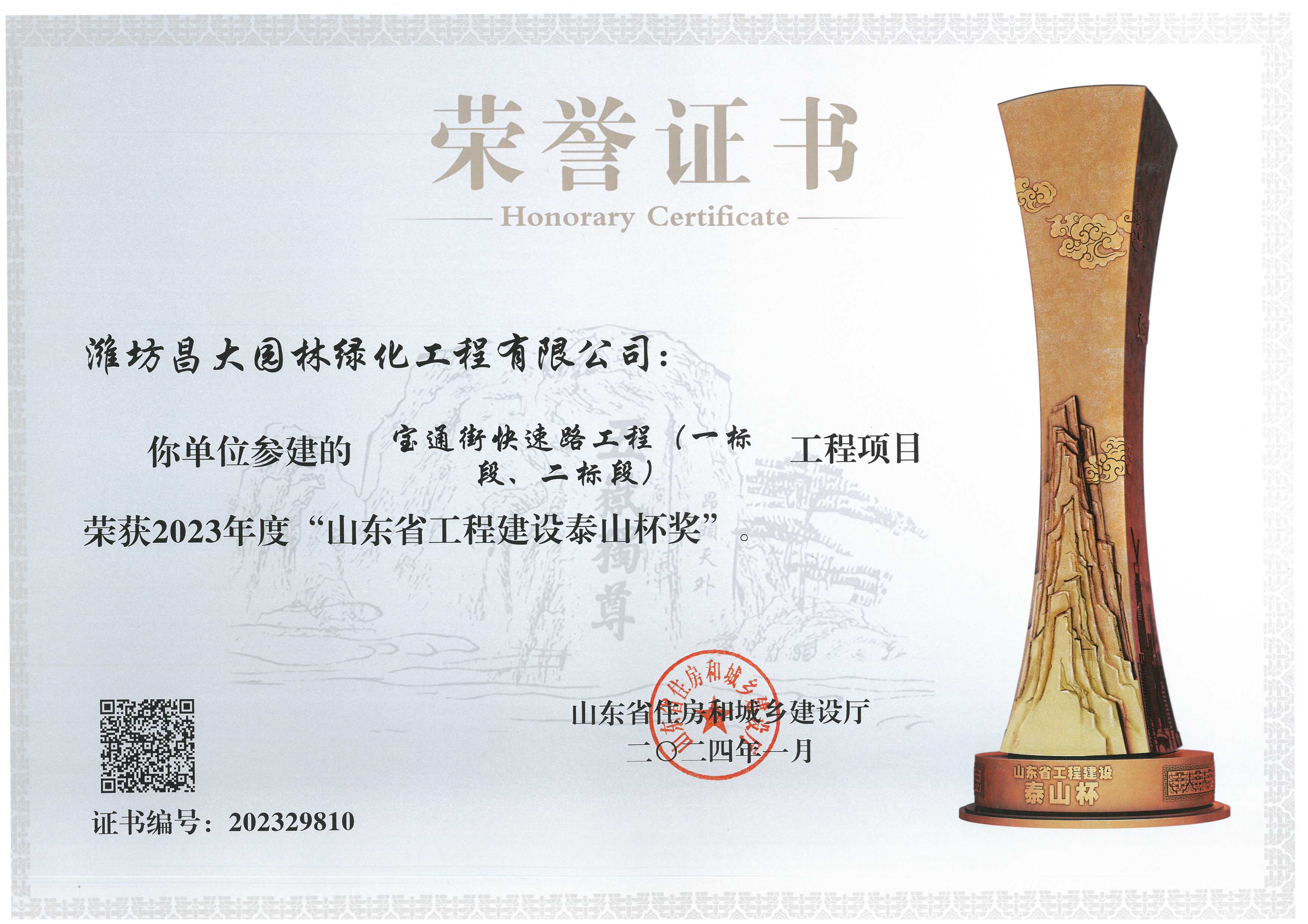 2023 年度山東省工程建設泰山杯獎
